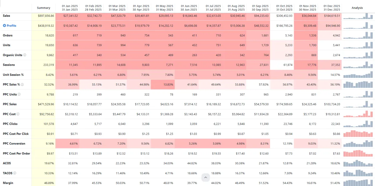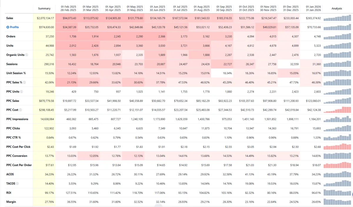 Profitable scaling means increasing revenue while maintaining control over TACOS, contribution margin, and long-term account stability. We don’t chase top-line growth at the expense of margin discipline.